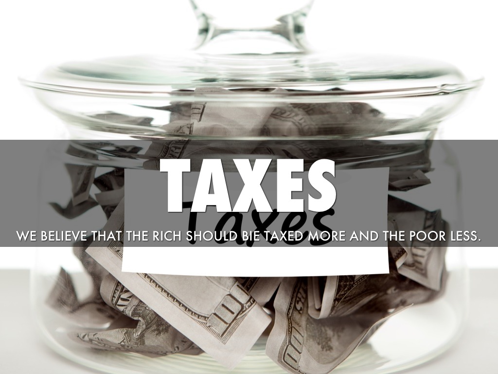 WE BELIEVE THAT THE RICH SHOULD BIE TAXED MORE AND THE POOR LESS.