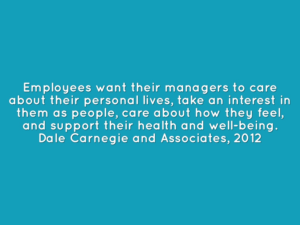 Employees want their managers to care about their personal lives, take an interest in them as people, care about how they feel, and support their health and well-being. Dale Carnegie and Associates, 2012