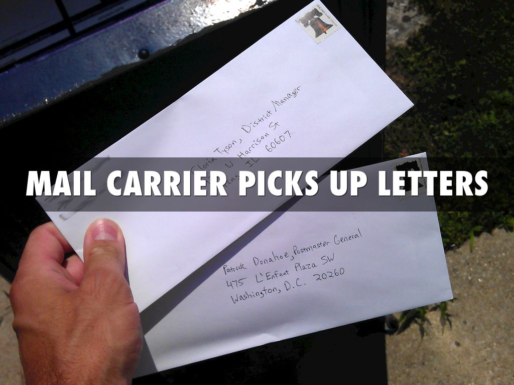 MAIL CARRIER TAKES LETTER TO POST OFFICE