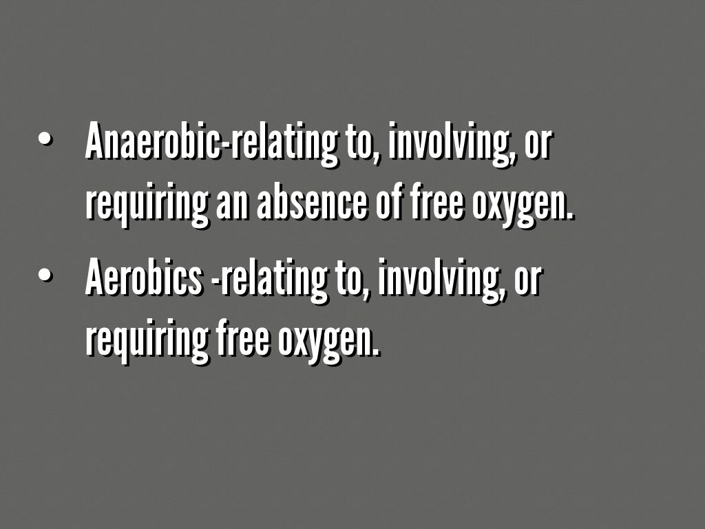 Anaerobic-relating to, involving, or requiring an absence of free oxygen.