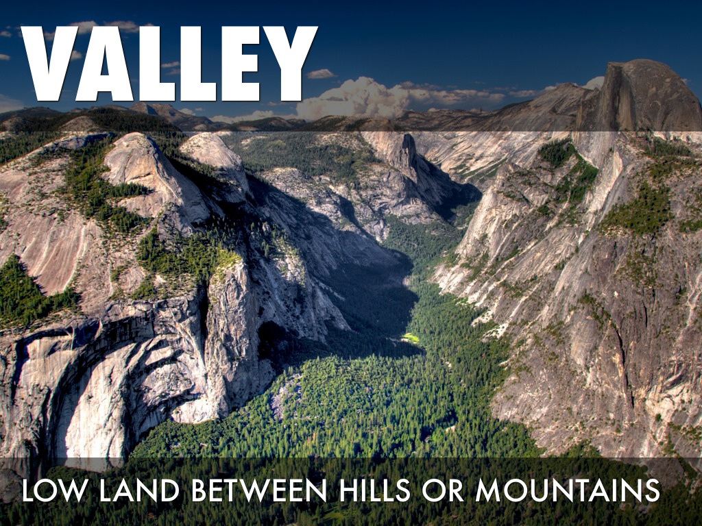 LOW LAND BETWEEN HILLS OR MOUNTAINS