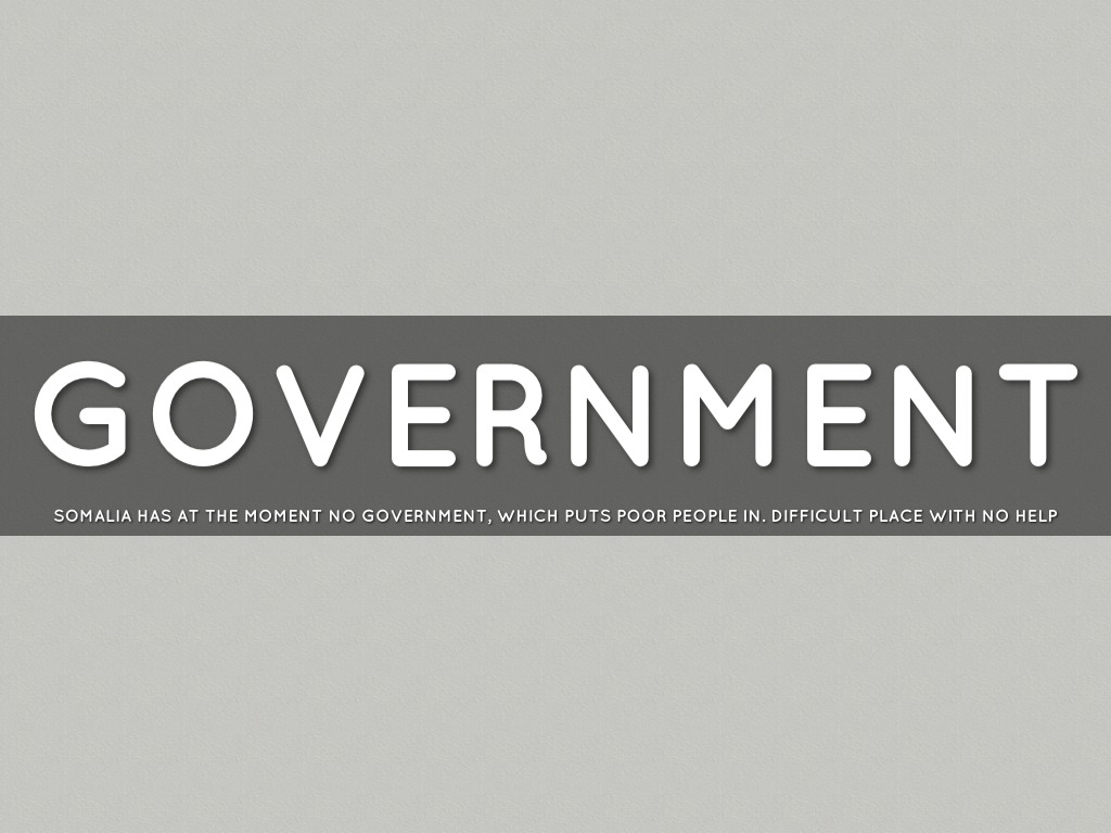 SOMALIA HAS AT THE MOMENT NO GOVERNMENT, WHICH PUTS POOR PEOPLE IN. DIFFICULT PLACE WITH NO HELP