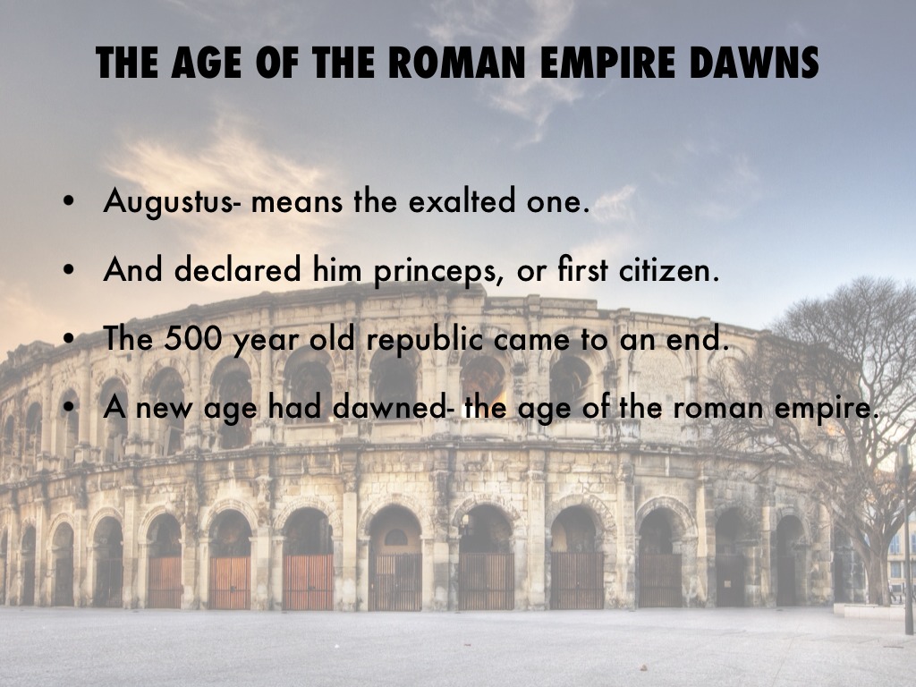 THE AGE OF THE ROMAN EMPIRE DAWNS