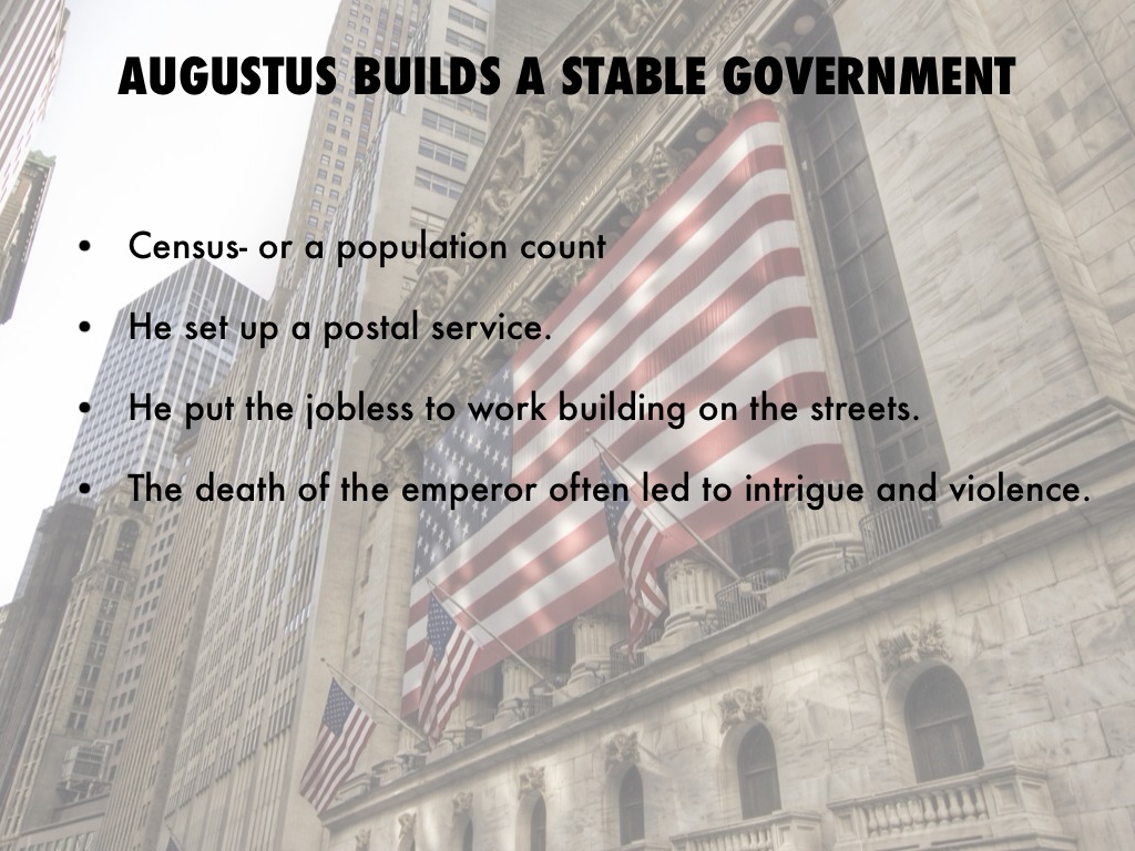 AUGUSTUS BUILDS A STABLE GOVERNMENT