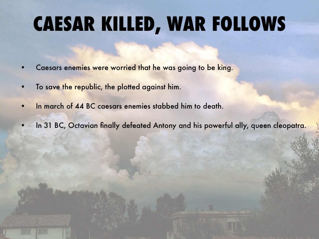 In 31 BC, Octavian finally defeated Antony and his powerful ally, queen cleopatra.