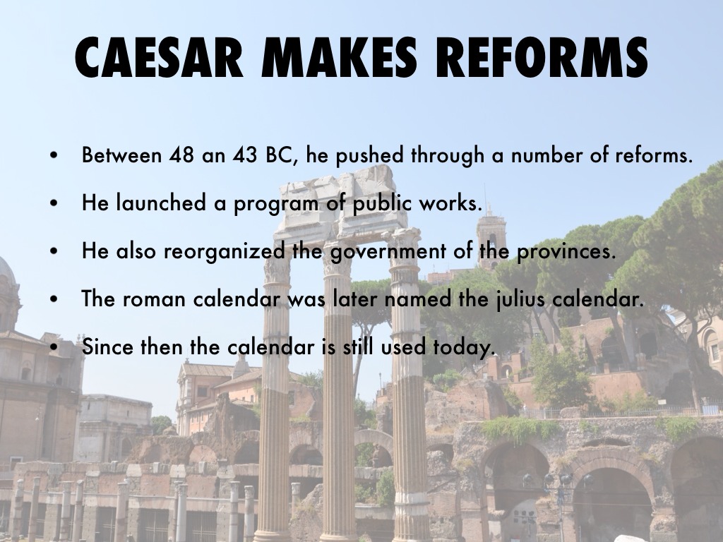 Between 48 an 43 BC, he pushed through a number of reforms.