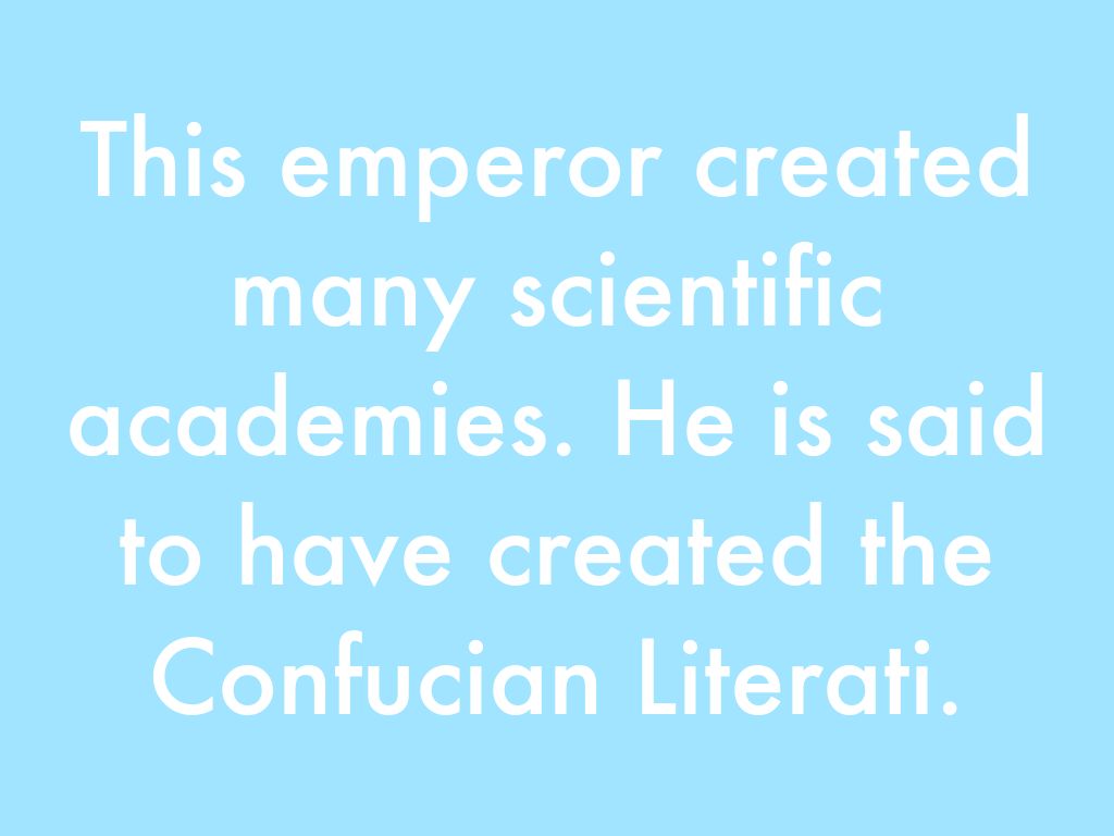 This emperor created many scientific academies. He is said to have created the Confucian Literati.