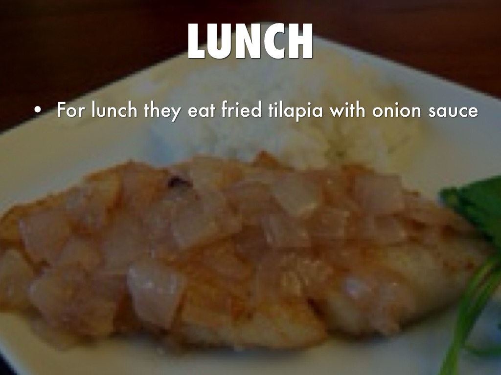 For lunch they eat fried tilapia with onion sauce