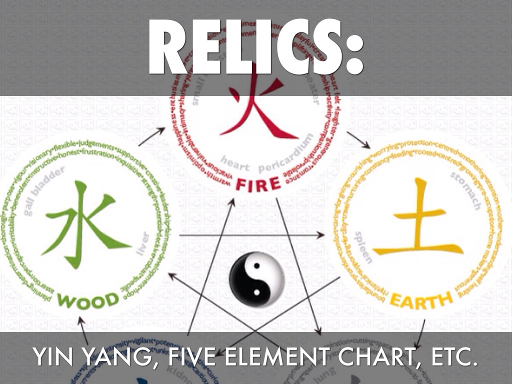 YIN YANG, FIVE ELEMENT CHART, ETC.