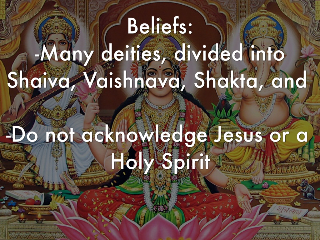 -Many deities, divided into Shaiva, Vaishnava, Shakta, and