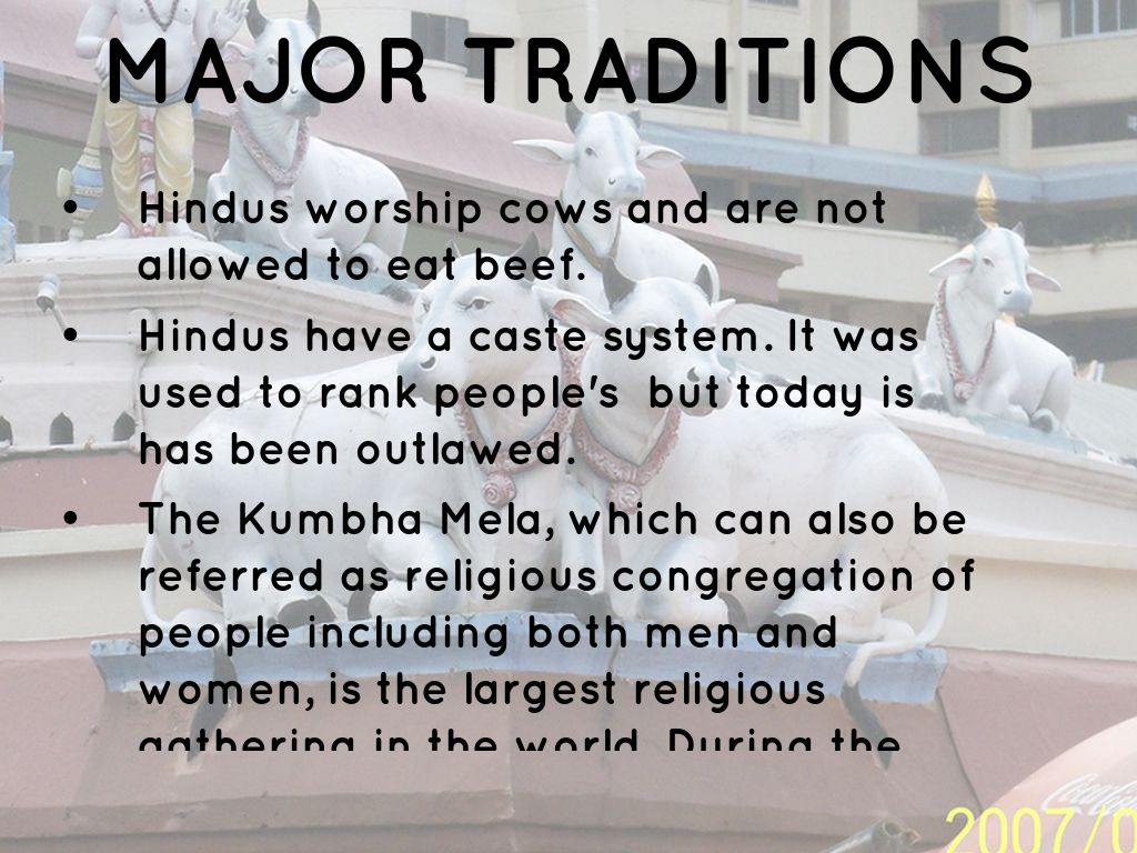 Hindus have a caste system. It was used to rank people's but today is has been outlawed.
