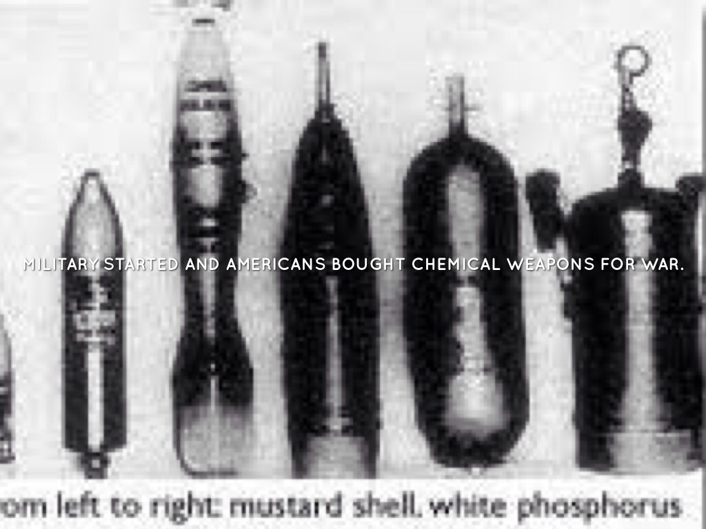 MILITARY STARTED AND AMERICANS BOUGHT CHEMICAL WEAPONS FOR WAR.