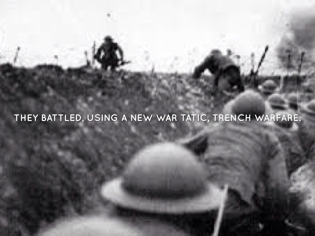 THEY BATTLED, USING A NEW WAR TATIC, TRENCH WARFARE.