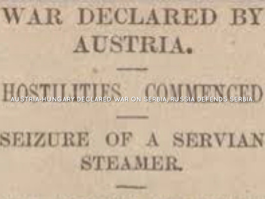 Austria-Hungary declared war on Serbia, Russia defends Serbia.