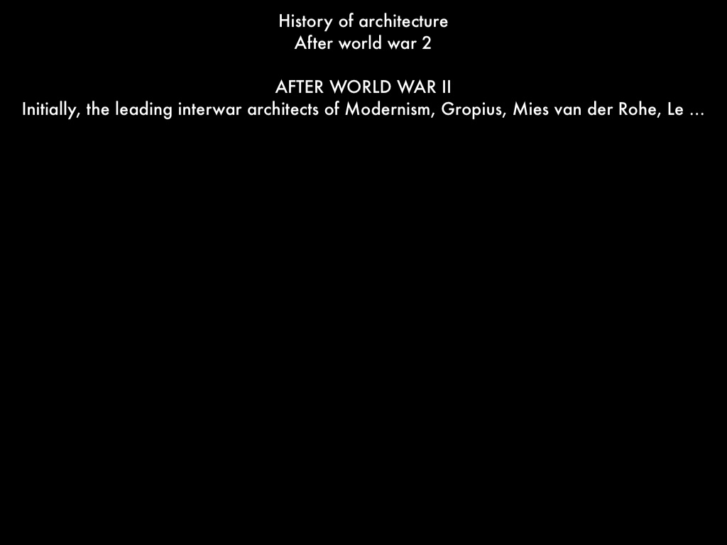 Initially, the leading interwar architects of Modernism, Gropius, Mies van der Rohe, Le Corbusier, Wright, and Aalto, continued to dominate the scene. In the United States, Gropius, with Breuer, introduced modern houses to Lincoln, Massachusetts, a Boston suburb, and formed a group, the Architects Collaborative, the members of which designed the thoroughly modern Harvard Graduate Center (1949–50). Mies became dean of the department of architecture at the Illinois Institute of Technology at Chicago in 1938 and designed its new campus. Crown Hall (1952–56) marked the apogee of this quarter-century project.