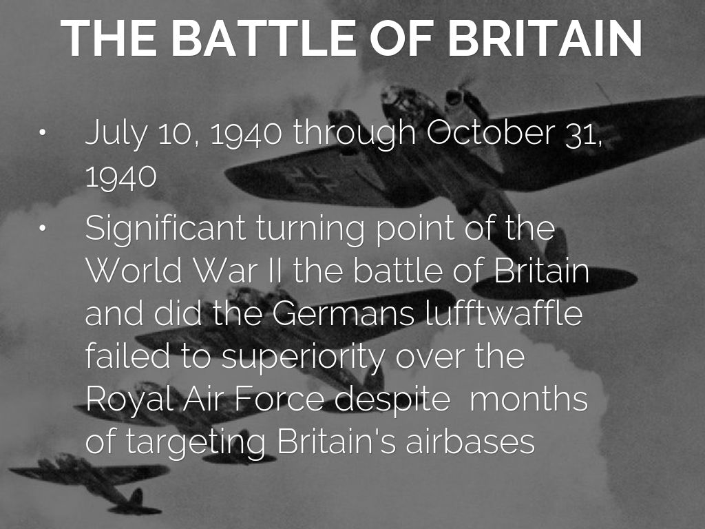 Significant turning point of the World War II the battle of Britain and did the Germans lufftwaffle failed to superiority over the Royal Air Force despite months of targeting Britain's airbases