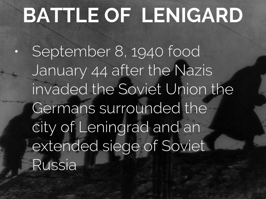 September 8, 1940 food January 44 after the Nazis invaded the Soviet Union the Germans surrounded the city of Leningrad and an extended siege of Soviet Russia