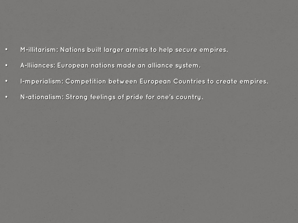• M-illitarism: Nations built larger armies to help secure empires.