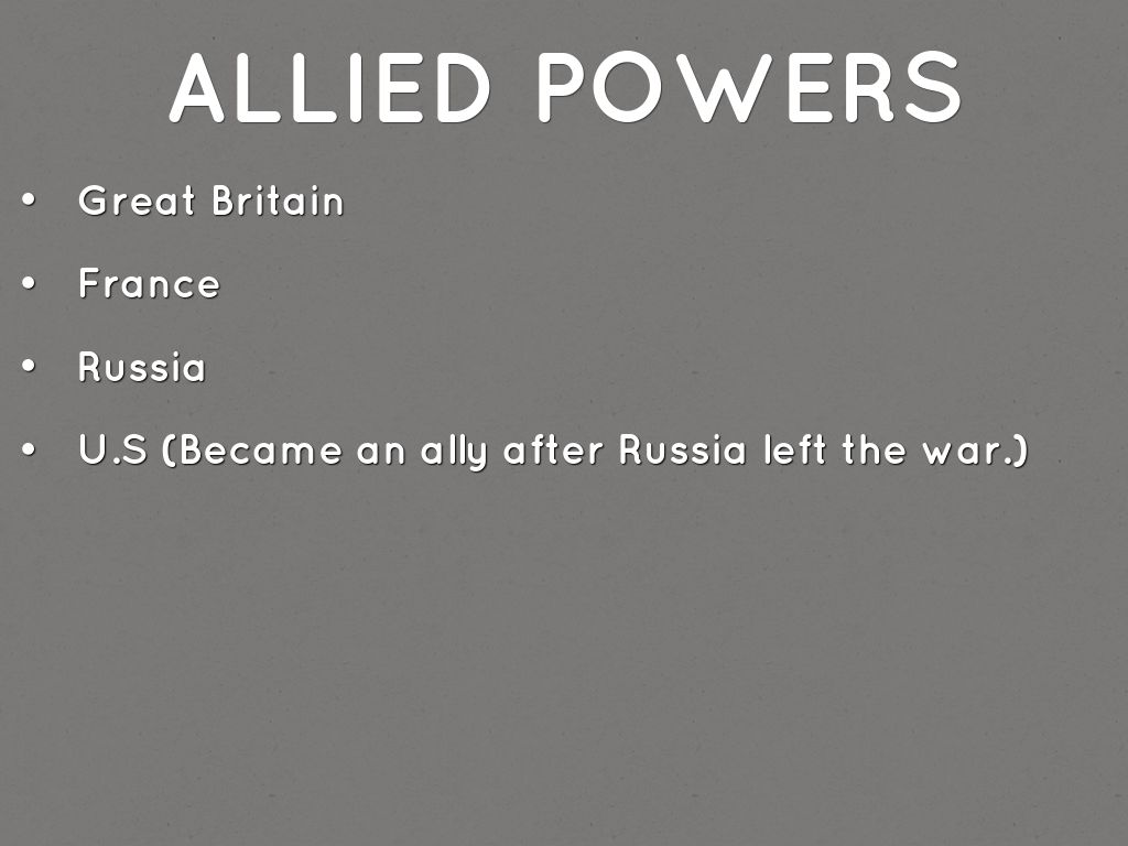 • U.S (Became an ally after Russia left the war.)