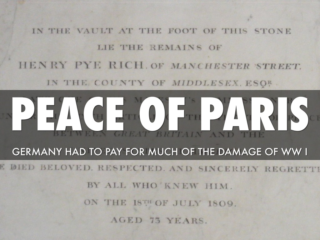 GERMANY HAD TO PAY FOR MUCH OF THE DAMAGE OF WW I