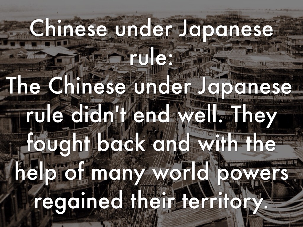 The Chinese under Japanese rule didn't end well. They fought back and with the help of many world powers regained their territory.