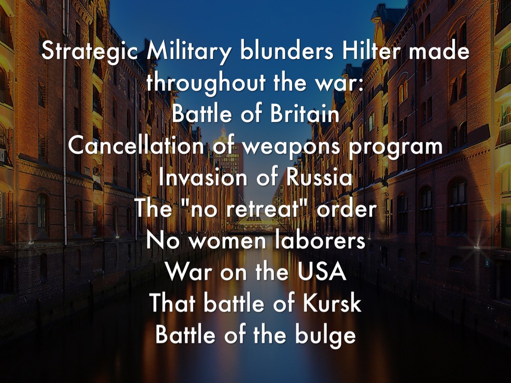 Germany was ruined after World War One, and in a very weak state. Hitler came along and promised them to return Germany to its former power and help bring back it's greatness. Because of their hardships, the Germans believed him and followed him into what would become World War Two.