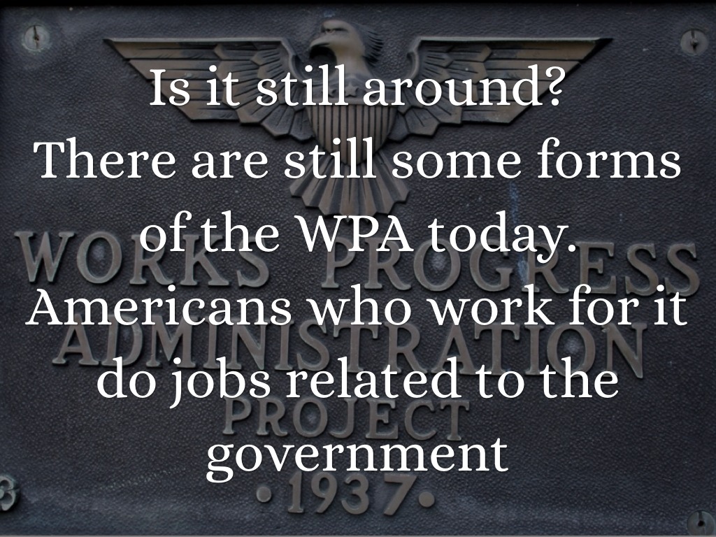 There are still some forms of the WPA today. Americans who work for it do jobs related to the government