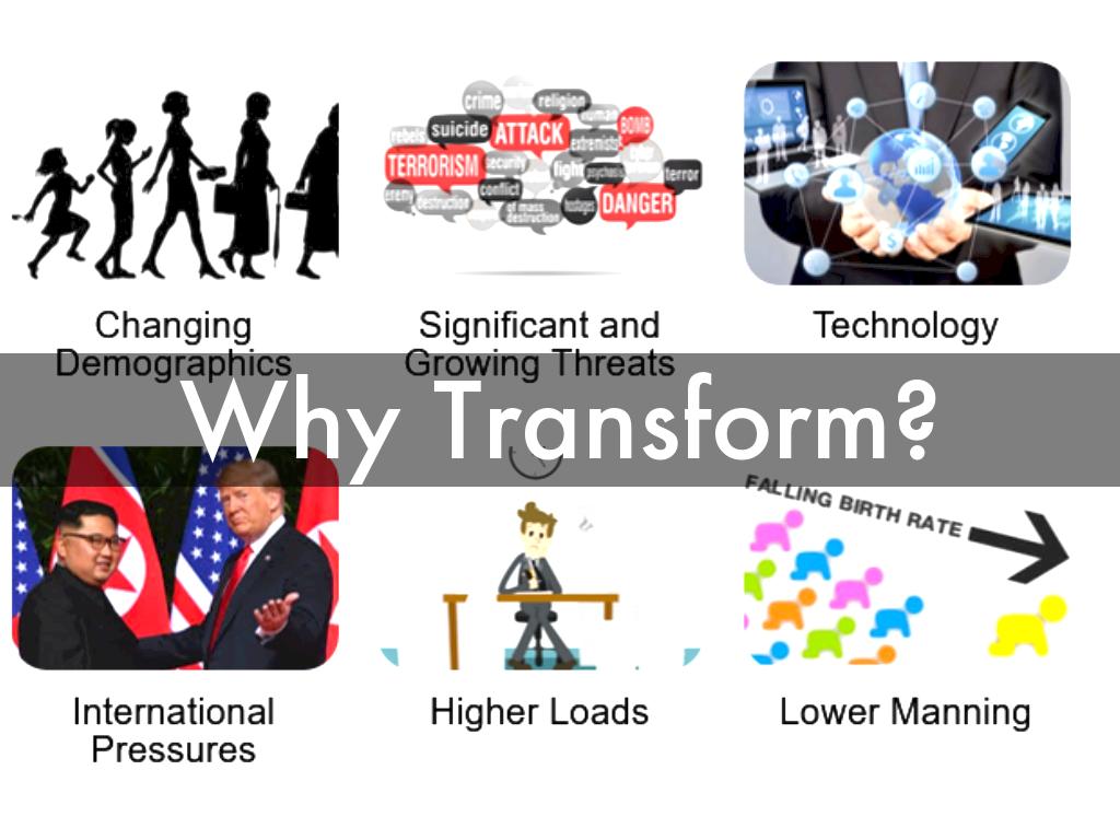 Why do we need to transform training? There are 6 key reasons (driving forces may be too technical for front-line officers).