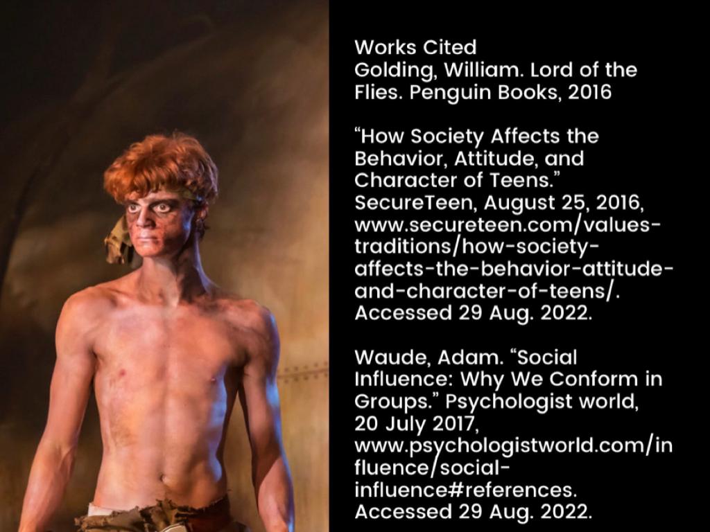 In the lord of the flies, many children maintain a kind heart and help each other at the beginning, but at the end of the story everyone is influenced by their own small society and becomes murderous