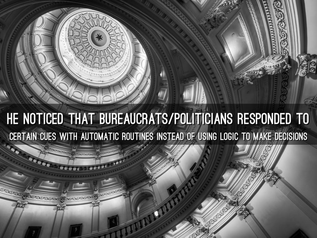 he noticed that bureaucrats/politicians responded to