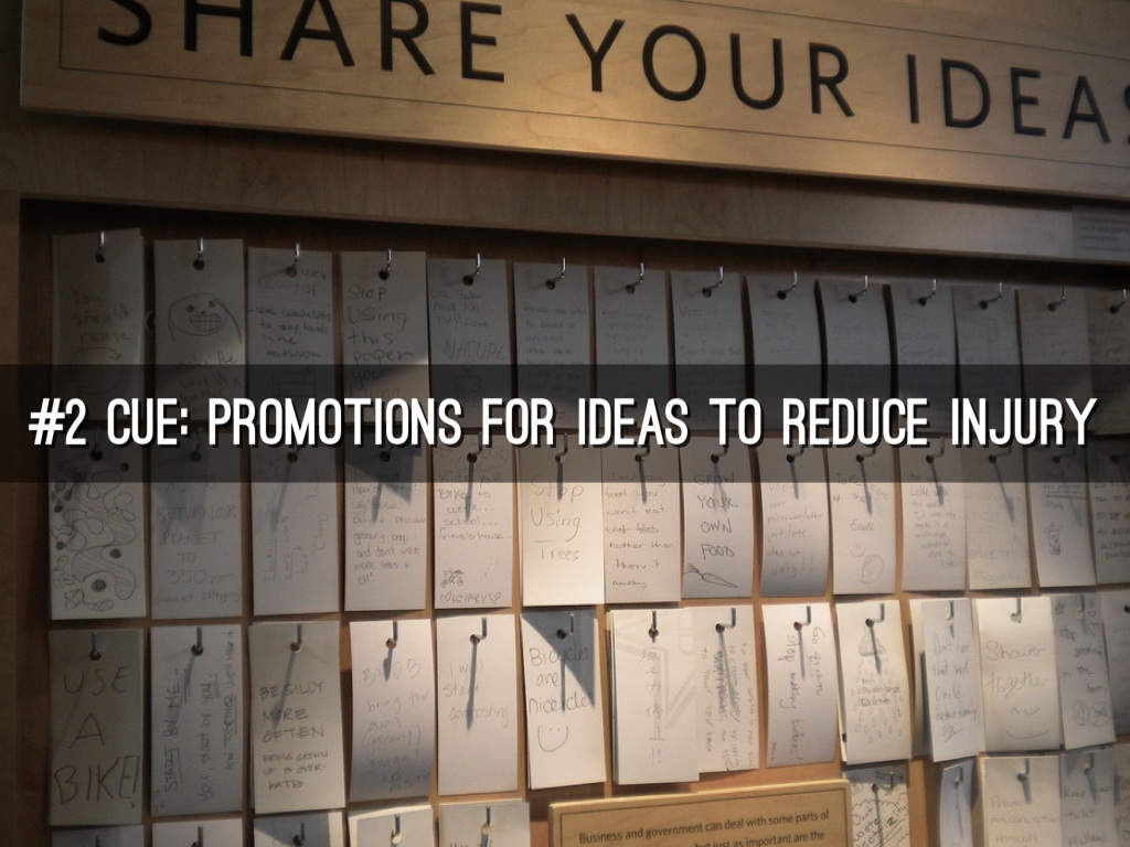 #2 cue: promotions for ideas to reduce injury