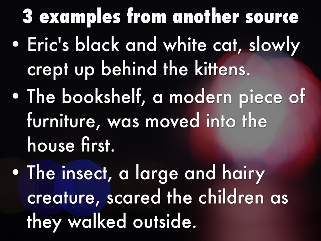 • Appositives phrase- more than one noun that renames another noun right beside it.