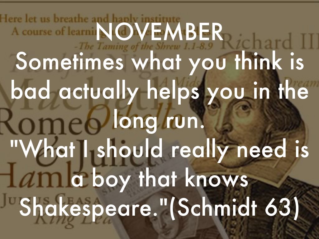"What I should really need is a boy that knows Shakespeare."(Schmidt 63)