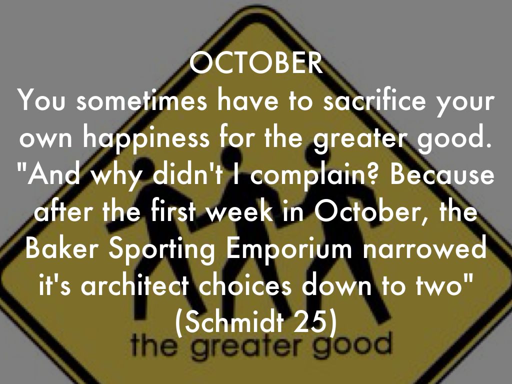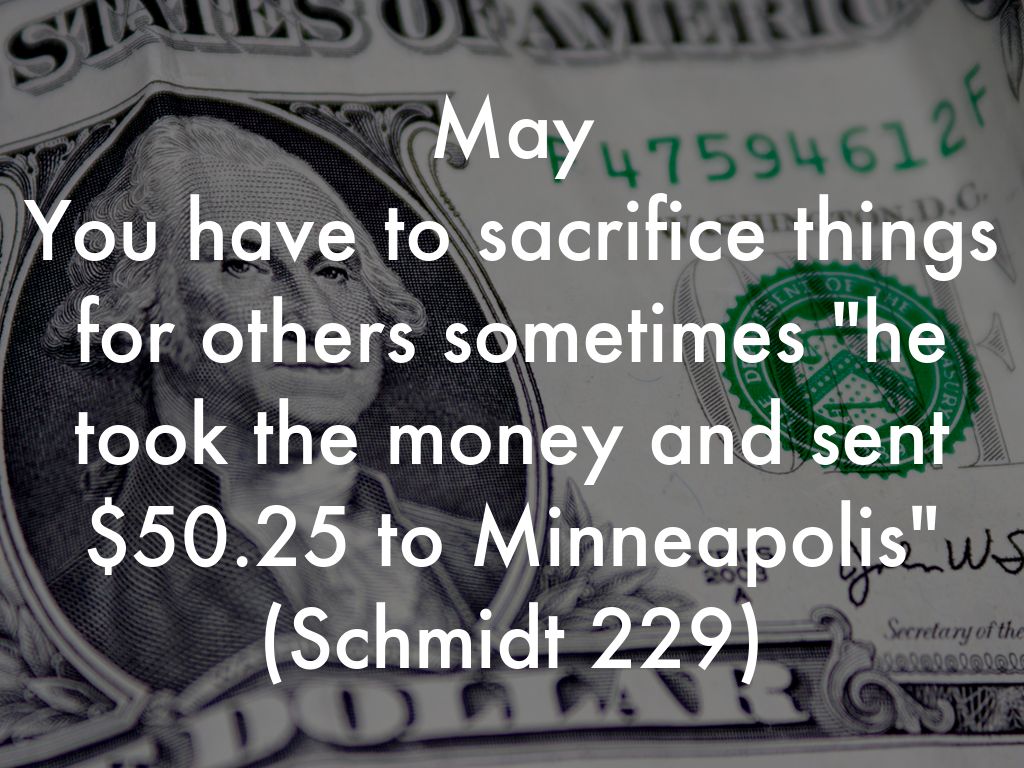 You have to sacrifice things for others sometimes "he took the money and sent $50.25 to Minneapolis"(Schmidt 229)