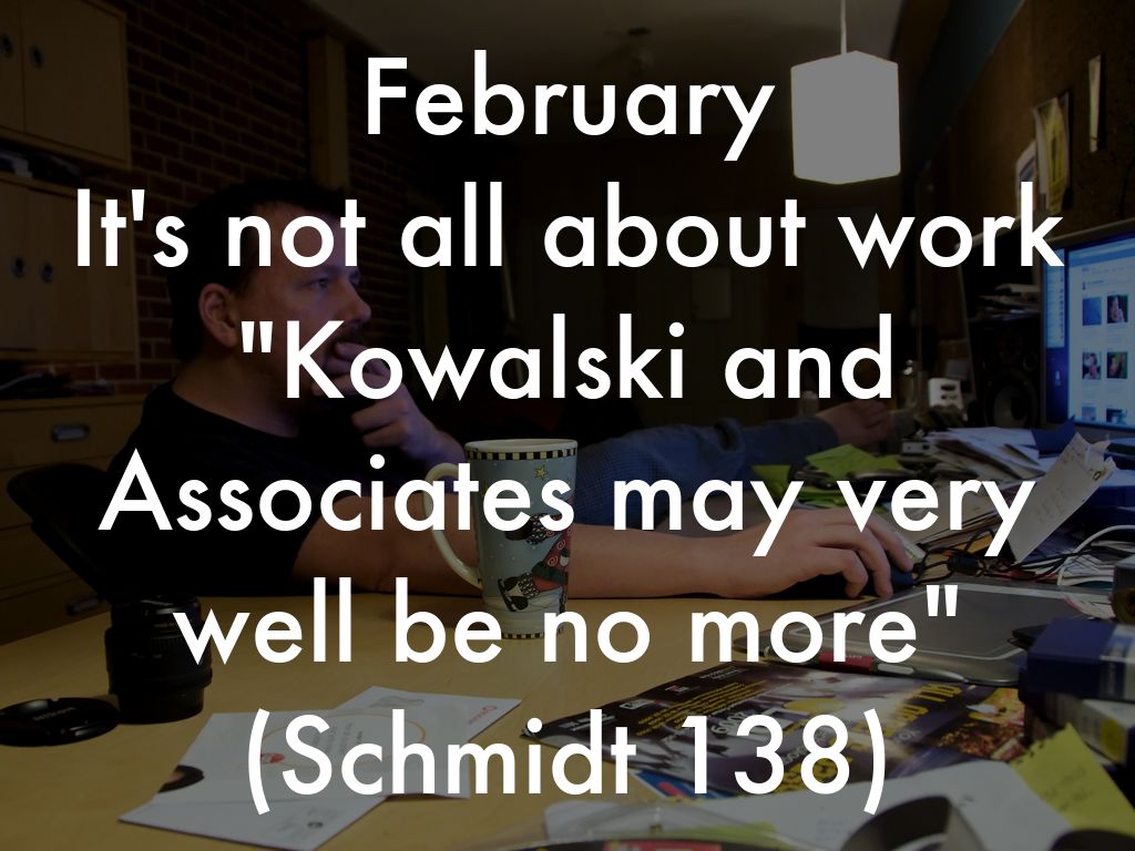 "Kowalski and Associates may very well be no more"(Schmidt 138)