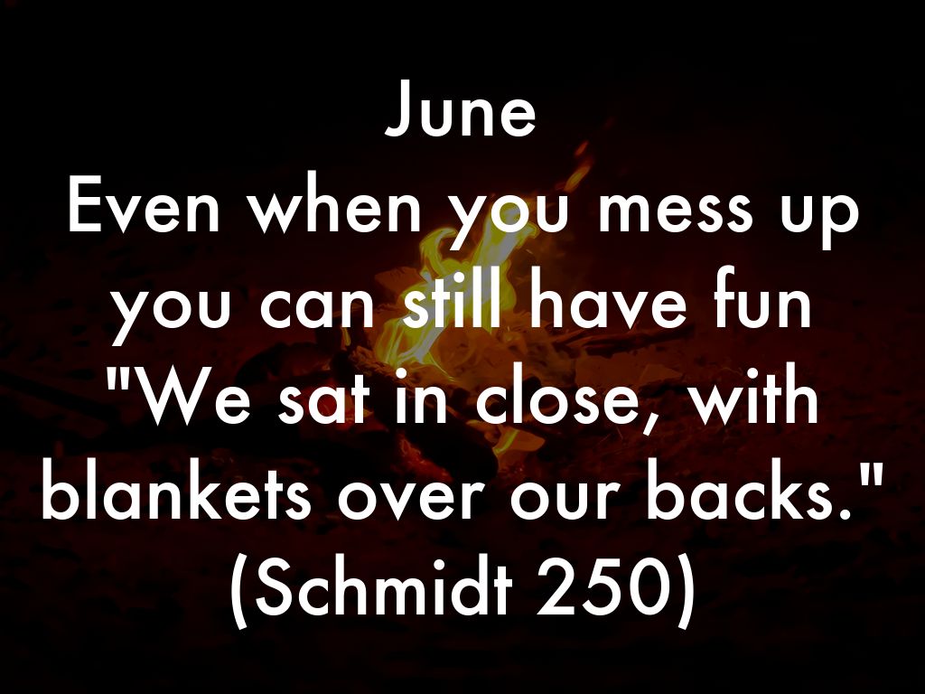 "We sat in close, with blankets over our backs."(Schmidt 250)