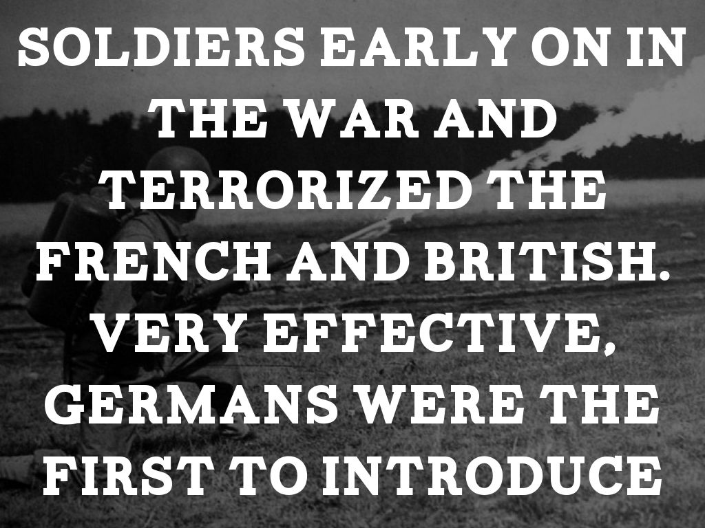 Used by German soldiers early on in the war and terrorized the French and British. Very effective, Germans were the first to introduce it.