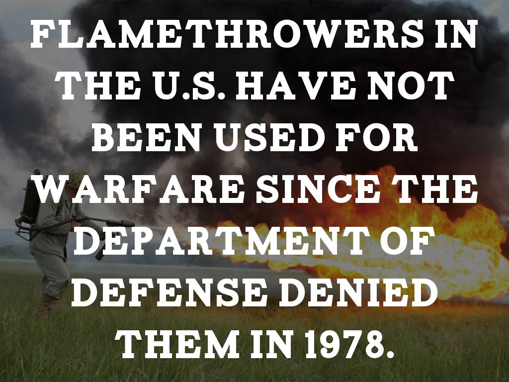 Flamethrowers in the U.S. Have not been used for warfare since the department of defense denied them in 1978.