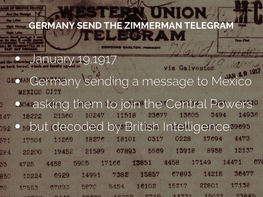 GERMANY SEND THE ZIMMERMAN TELEGRAM