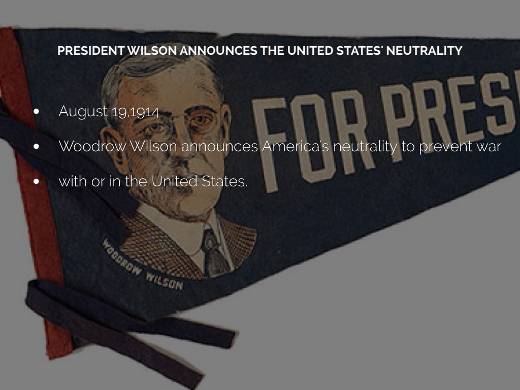 PRESIDENT WILSON ANNOUNCES THE UNITED STATES' NEUTRALITY
