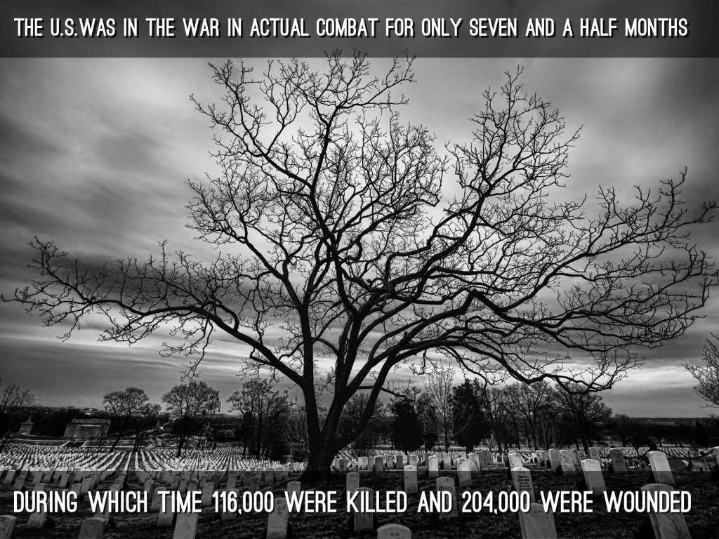 THE U.S.WAS IN THE WAR IN ACTUAL COMBAT FOR ONLY SEVEN AND A HALF MONTHS