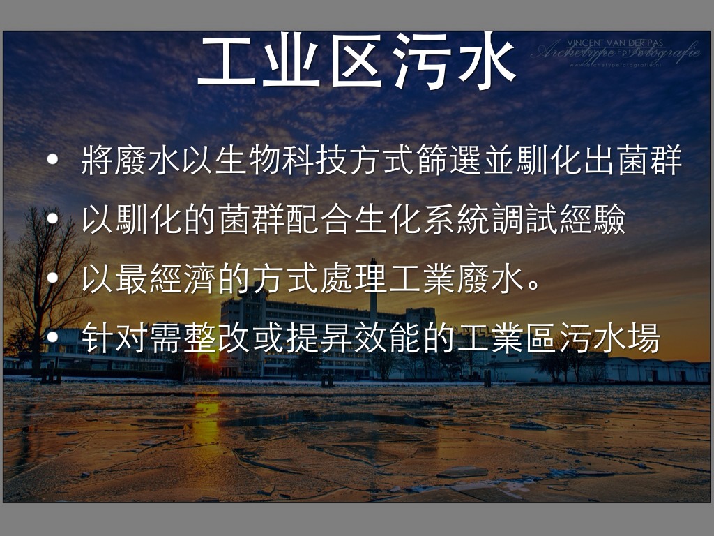 將廢水以生物科技方式篩選並馴化出菌群