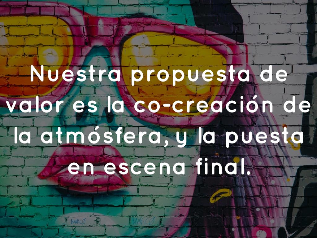 Nuestra propuesta de valor es la co-creación de la atmósfera, y la puesta en escena final.