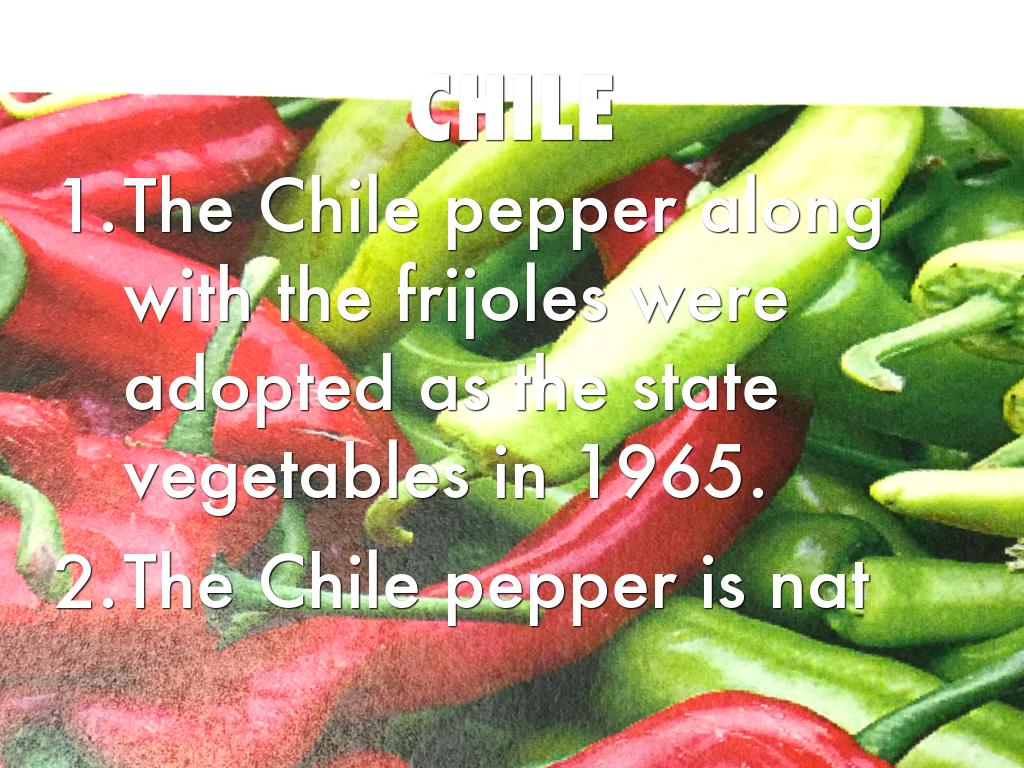 The Chile pepper along with the frijoles were adopted as the state vegetables in 1965.