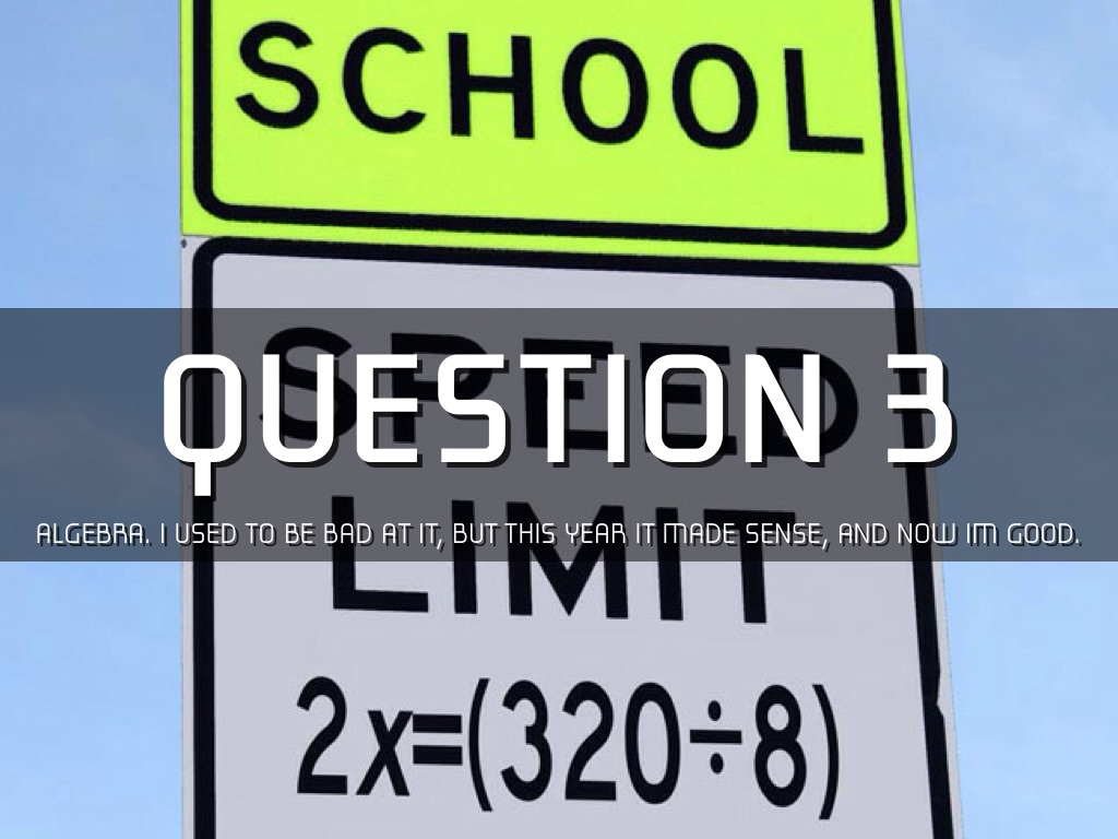 ALGEBRA. I USED TO BE BAD AT IT, BUT THIS YEAR IT MADE SENSE, AND NOW IM GOOD.