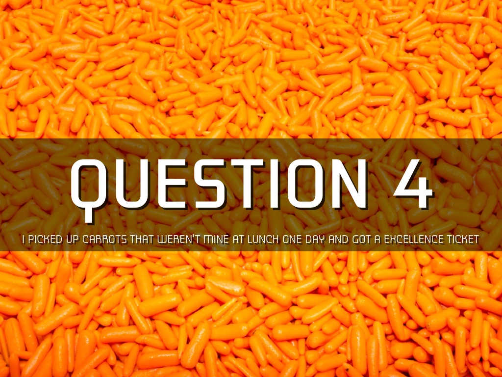 I PICKED UP CARROTS THAT WEREN'T MINE AT LUNCH ONE DAY AND GOT A EXCELLENCE TICKET