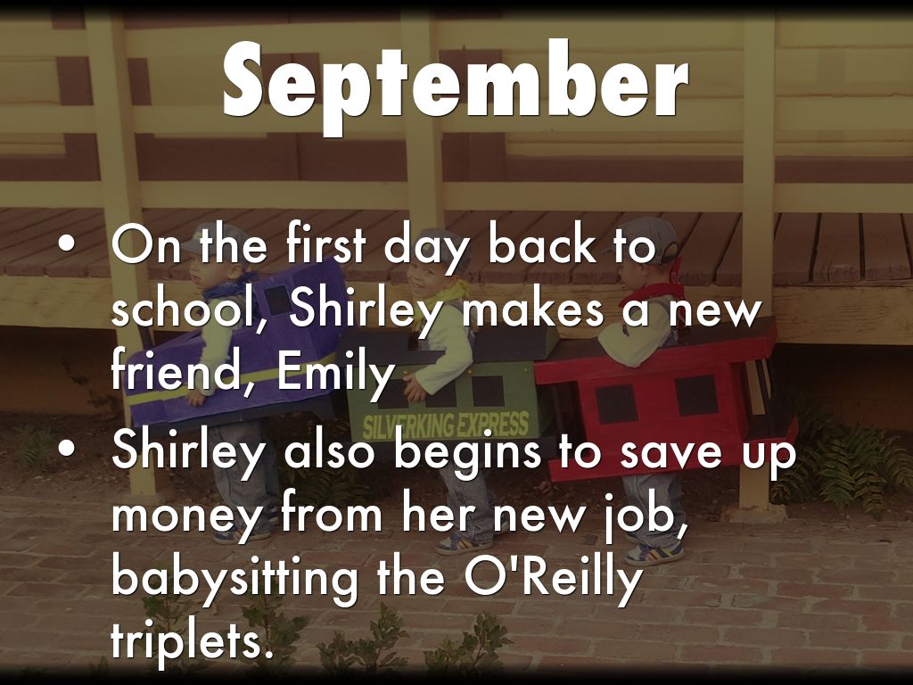 Shirley also begins to save up money from her new job, babysitting the O'Reilly triplets.
