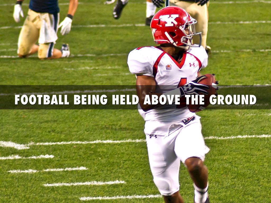 FOOTBALL BEING HELD ABOVE THE GROUND