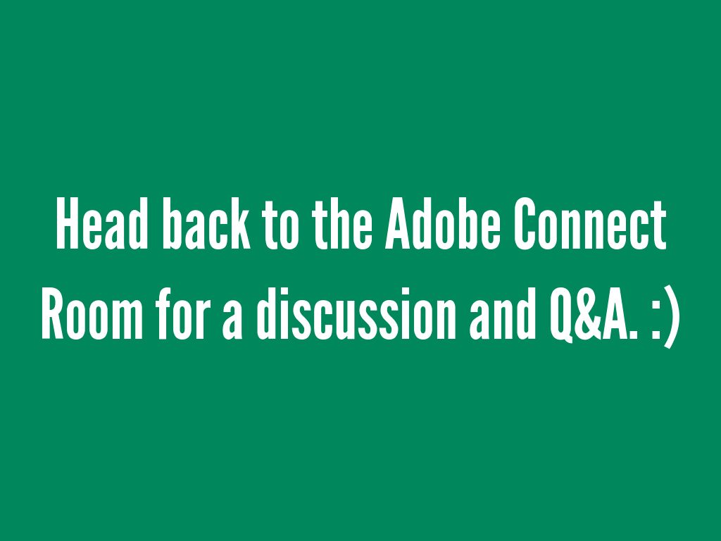 Head back to the Adobe Connect Room for a discussion and Q&A. :)
