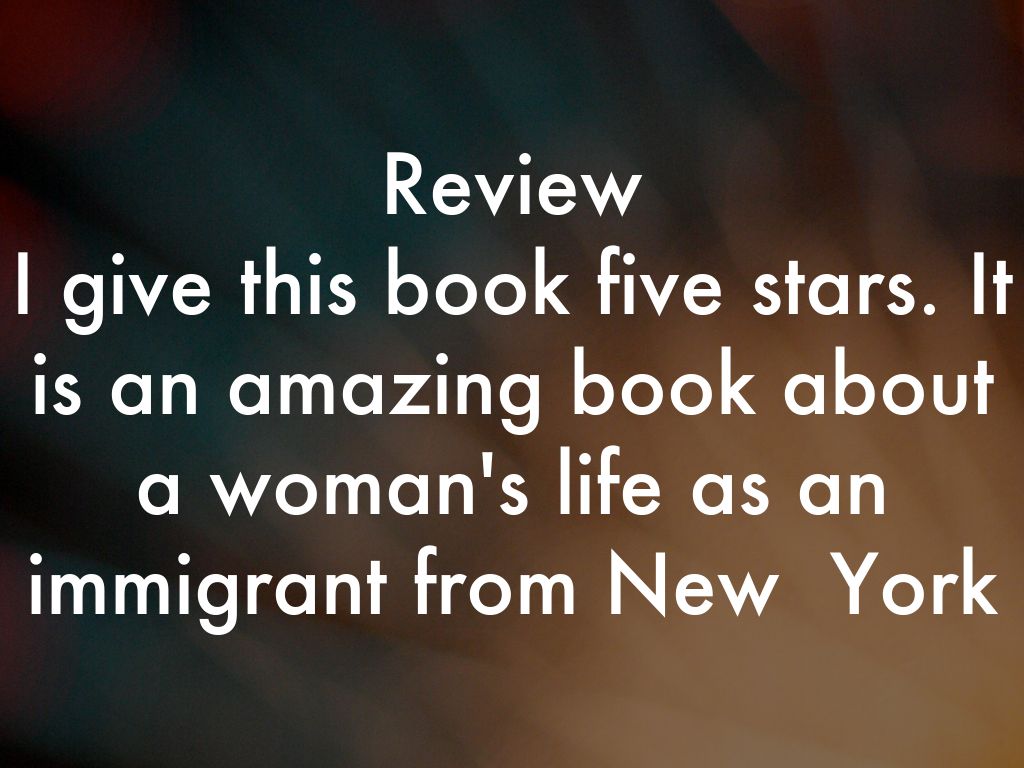 I give this book five stars. It is an amazing book about a woman's life as an immigrant from New York